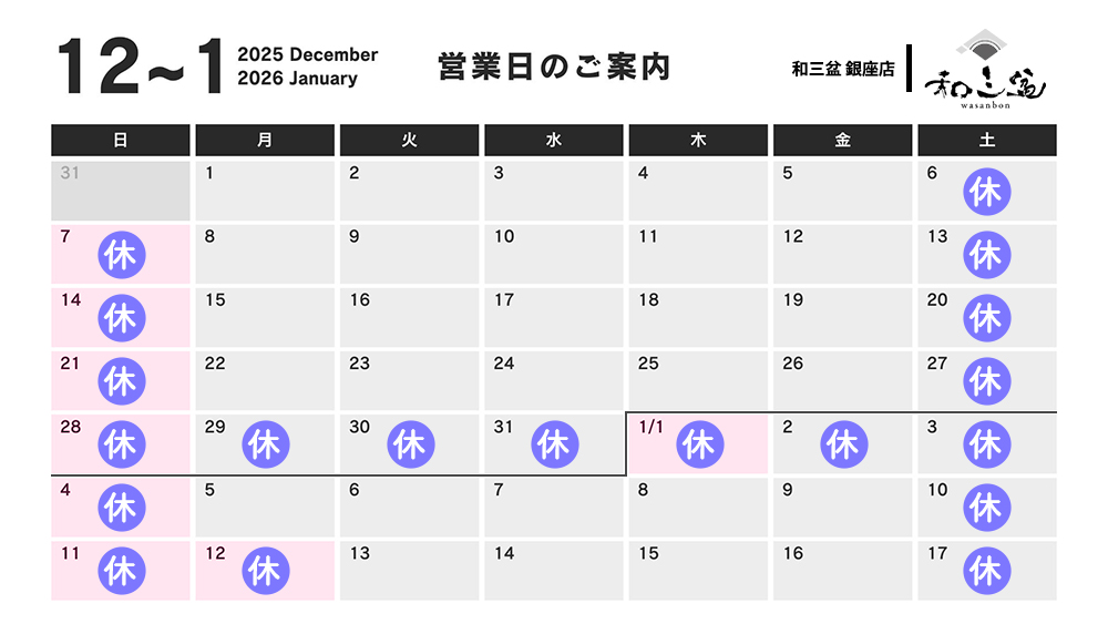 平素より格別のご愛顧を賜り、厚く御礼申し上げます。 銀座の串揚げおでん屋 | 和三盆 銀座店 の年末年始の営業予定をお伝えさせて頂きます。御来店をご予定頂く参考にして頂けますと幸いです。 ◆店休日 【2024年】 12/ […]